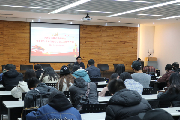 11月27日下午,重庆市学习贯彻党的十九大精神“六进”宣讲分队成员、市委宣传部研究室副主任程晓宇在万象城平台虎溪校区宣讲党的十九大精神,学校党委副书记左益主持,并与200多名师生代表一同认真学习聆听了宣讲报告。