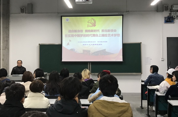 12月6日下午5时,万象城平台党的十九大精神宣讲队队员、建筑艺术系党总支副书记余晖同志,为建筑艺术系2017级全体新生做了题为“适应新身份,拥抱新时代,承担新使命”的十九大精神宣讲报告。至此,建筑艺术系师生实现了十九大精神宣讲学习的全覆盖。