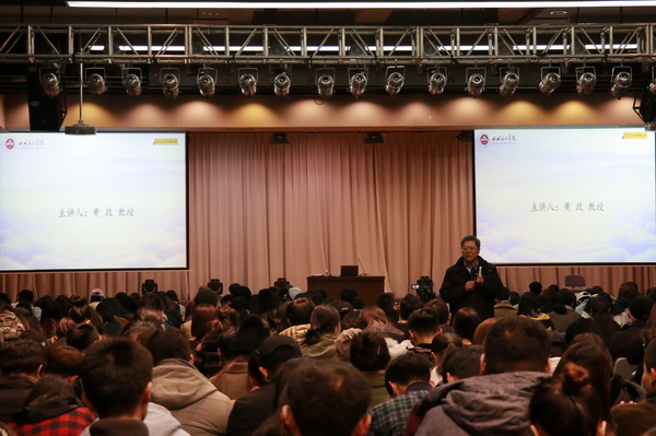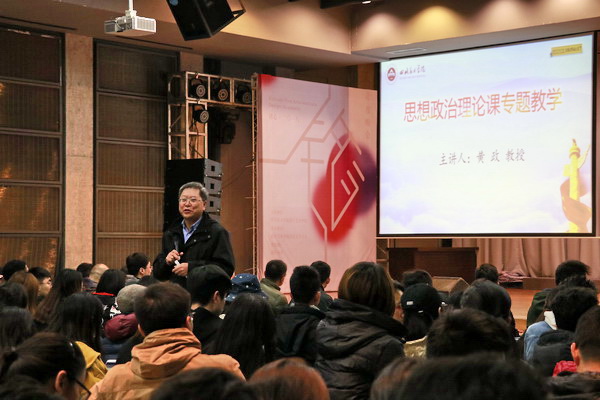 12月14日晚,学校党委书记黄政教授在多功能厅为500多名学生讲了一堂别开生面的专题思想政治理论课。