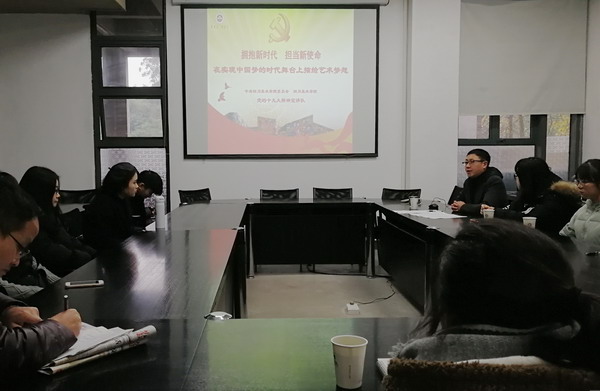 贾安东同志首先对党的十九大精神主要内容进行了概述性介绍,重点解读了十九大报告中关于“坚定文化自信,推动社会主义文化繁荣兴盛”的内容,以及如何把十九大精神落实在学校改革发展中。