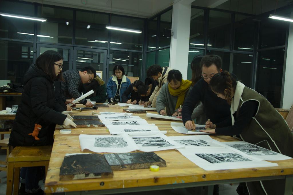 采访中,李曜明副书记对我校的校园文化建设高度赞赏,对十九大精神主题创作作品给予了高度的评价。采访组现场采访拍摄了我校美术教育系主题招贴作品、中国画系书法长卷作品、版画系黑白木刻版画作品和影视动画学院“漫说十九大”动画与皮影相结合的作品等。
