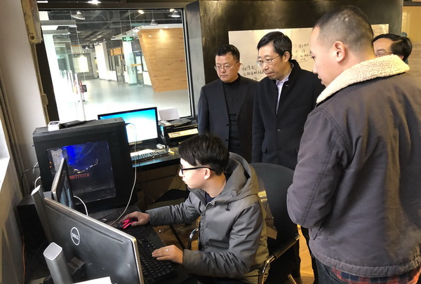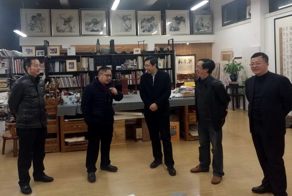 覃正杰一行参观了大学生文化创意微型企业园,与创业大学生亲切交流;到虎溪公社参观了王朝刚、傅舟等艺术家工作室。覃正杰对我校大学生发挥学校专业优势,加强创新创业教育、实践以及取得成绩,发扬专业特长,加强十九大精神宣传表示充分肯定。在调研过程中,他提到,希望我校进一步加强国际交流,在文化自信和文化传播发面发挥更大的作用。