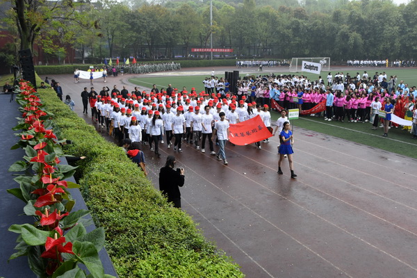 本届运动会为期两天,全校12个院系及机关两个总支的广大师生参加了学生组、教工组的竞赛项目。其中,有596名运动员参加单项比赛,172人参加集体项目比赛,768人参加趣味项目比赛。围绕“我运动,我健康;我快乐,我阳光”主题,这些项目不仅有投掷、跳高、跳远、接力等田径常规项目,还有迎面跳绳接力、袋鼠跳、运篮球折返跑等趣味项目,让广大师生员工在比赛中既感受运动的竞技性,又体会运动的趣味性和参与性,实现师生“强身健体”和“育人育心”的有机结合。