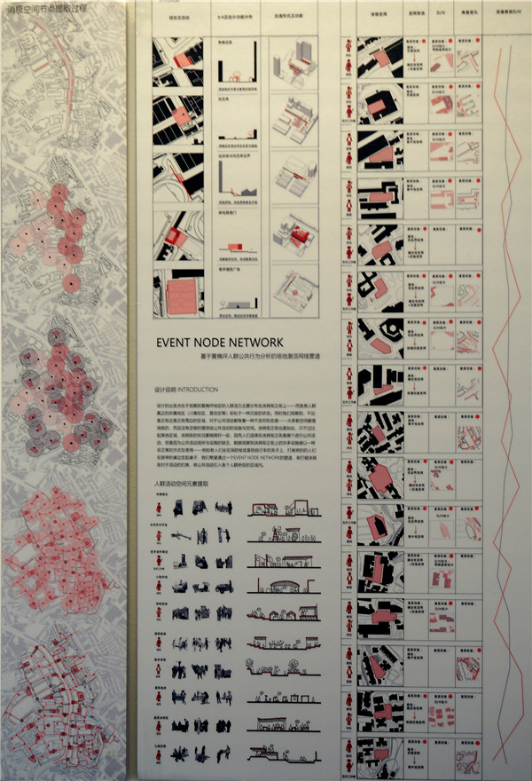 参加中期评图的各校师生混编成4个大组进行汇报交流,在央美7号楼第7、8层展厅同时进行。来自不同院校的同学们以图纸、模型、拼贴、影像及ppt陈述等形式,对设计过程和近期研究成果进行充分的展示和阐述,指导教师针对每个方案做了全面、深入并富有争论性的点评。