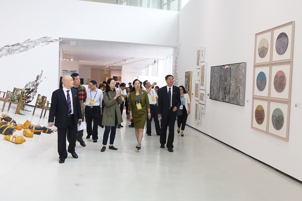 专家组先后考察了万象城平台美术馆,参观了正在展出的2018届本科毕业生作品展、美术馆馆藏展、《收租院》雕塑陈列及文献展、设计基础教学展;参观了教学实验中心、虎溪公社、CAEA美术馆;考察了孟福伟、杨仁敏、曾途、朱小禾、黄越、龚玉、康宁、师涛等老师负责的系列特色工作室、影视动画展厅和大学生微型企业园。
