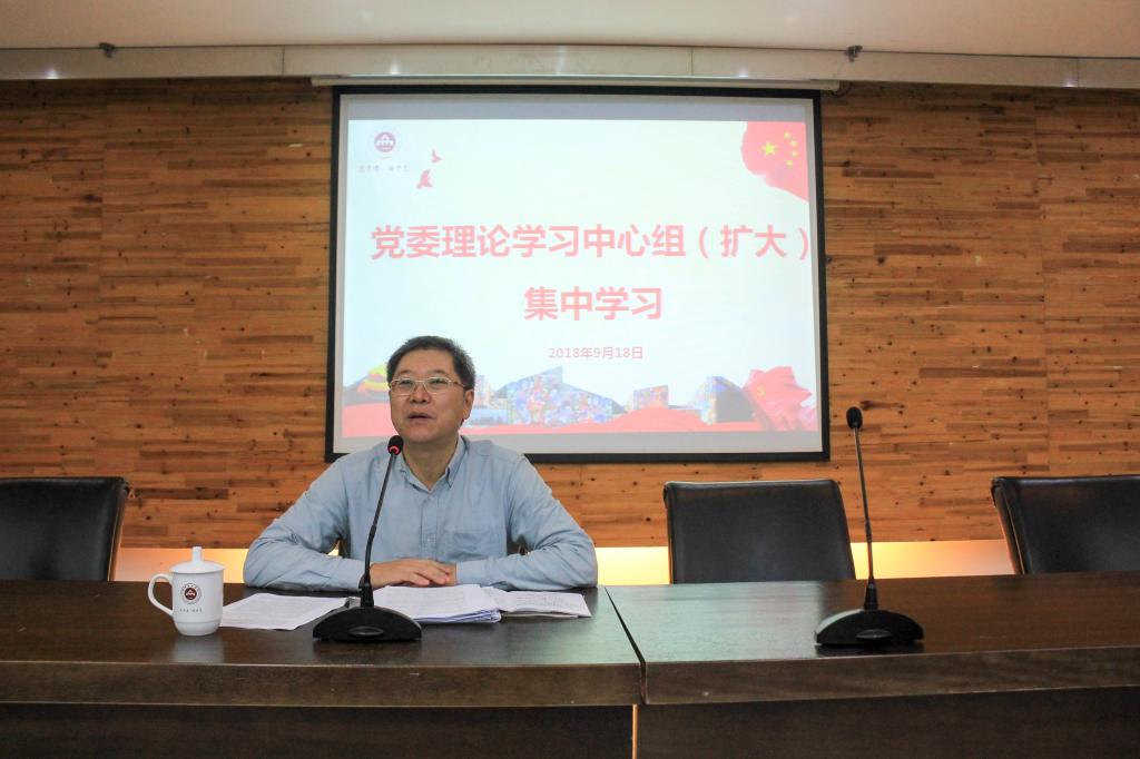 9月18日上午,学校党委理论学习中心组(扩大)召开会议,传达学习贯彻习近平总书记在全国教育大会上的重要讲话精神,习近平总书记给中央美术学院老教授重要回信和给电影表演艺术家牛犇回信,中共中央印发修订后的《中国共产党纪律处分条例》以及《关于当前意识形态领域情况的通报》等内容。校党委书记黄政主持会议并讲话。学校在校校领导出席会议,全体中层领导干部、党支部书记、思政理论课教研部教师和辅导员参加会议。
