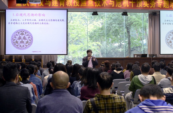 为提升我校教职工队伍开展大学生思想政治教育和心理健康教育工作能力,学校于10月12日至14日举办了重庆市高校马建青教授关于焦点技术与危机干预实务专题培训班(第二期)。我校教师工作部、学生工作部共同组织本校学工系统同志及部分青年教师、行政人员共计108人参与了培训。培训持续两天,主要内容为心理咨询焦点技术以及高校心理危机干预实务。