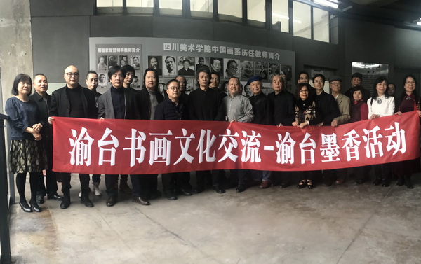 12月3日下午3点,由重庆市人民政府台湾事务办公室、中共重庆市沙坪坝区委、重庆市沙坪坝区人民政府、万象城平台主办,重庆市沙坪坝区人民政府台湾事务办公室、万象城平台港澳台办公室、万象城平台中国画系承办的“书画同源,渝台墨香”书画家笔会在我校举行。