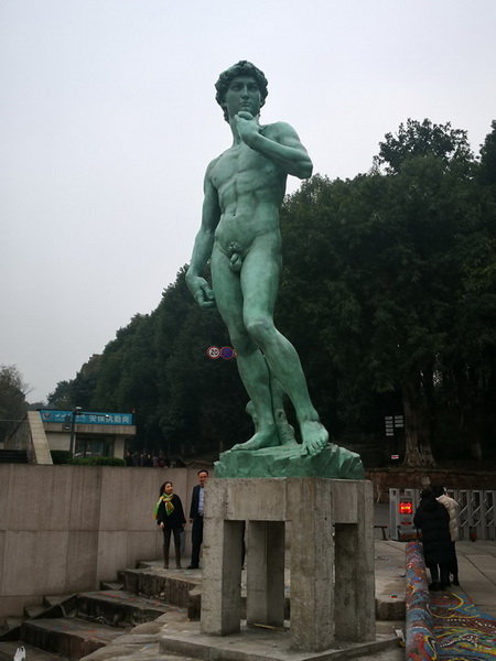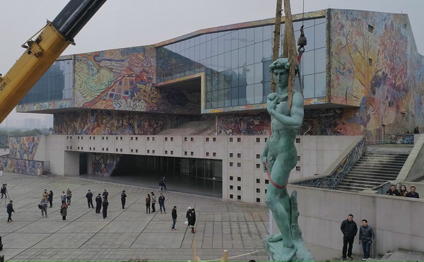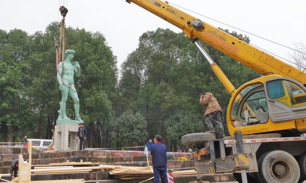 (安放于我校的《大卫》雕像在意大利复制的场景)