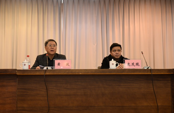 随后,黄政代表学校党委对学校2018年选人用人工作的总体情况作了专题工作报告。报告包括四个部分的内容:干部工作的基本情况,干部队伍建设的主要做法,存在的主要问题和改进措施,提请大会进行评议。