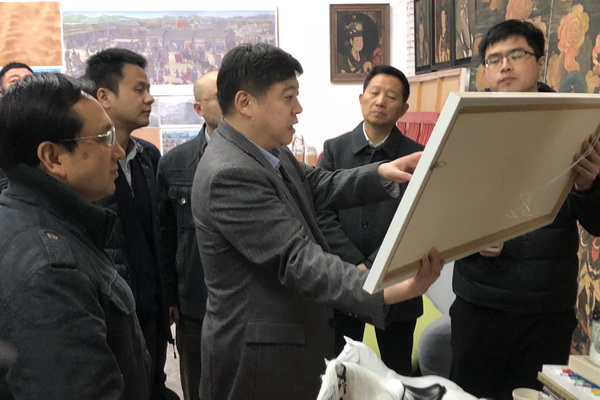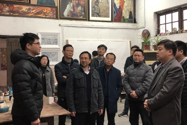 此次考察是新华社重庆分社调研“两江四岸”九龙坡段行程中的一个环节。李勇一行首先参观了校园,彭林权向考察团介绍了我校的历史沿革、办学特色、取得成就,以及黄桷坪校区的整体情况。随后,带领大家参观了坦克库-当代艺术中心,走访了艺术家工作室。李勇与青年艺术家亲切交谈,交流创作情况,关心青年艺术家的学习工作、成长发展。
