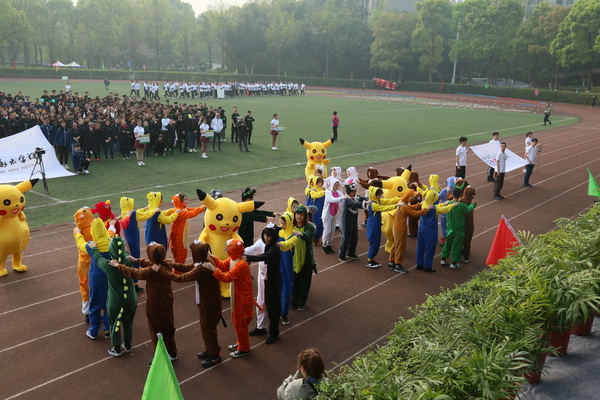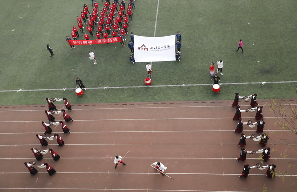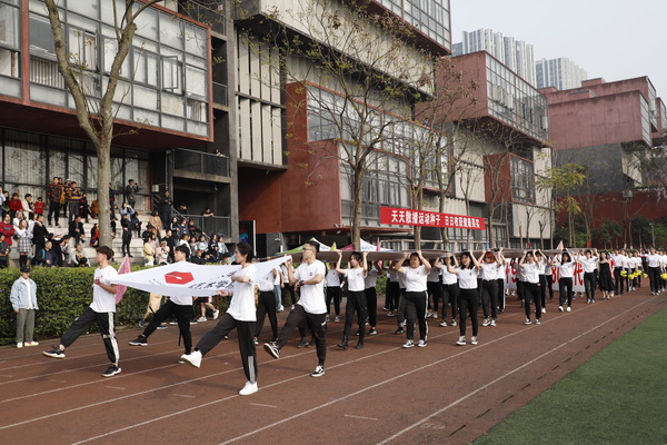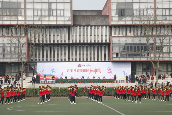 庞茂琨致开幕辞并宣布万象城平台2019春季田径运会开幕。全校14个单位的运动员和师生代表组成了入场方队,各个单位的入场方阵都展现出各自的学科和专业特色。伴随着青春欢快的音乐,川美学子表演了富有青春气息的团体操表演,展示了我校学生蓬勃朝气、意气风发的精神面貌。