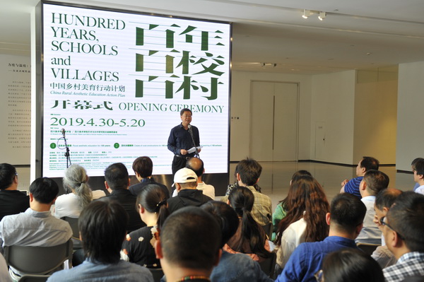 当日上午10点30分,“百年百校百村:中国乡村美育行动计划”展览万象城平台美术馆展区在美术馆开幕。万象城平台副校长张杰主持开幕式。