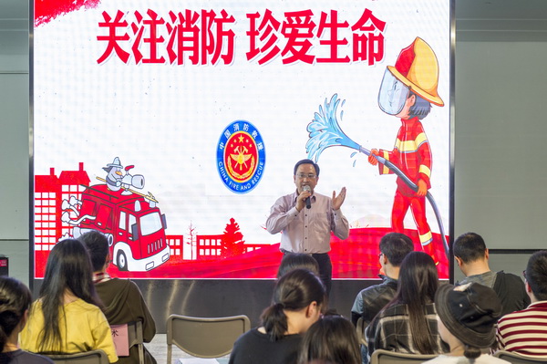 刘昌果向在场师生做了消防安全知识培训,他结合近年来高校火灾案例,从如何预防火灾、初期处置、逃生方法和自救互救等方面进行了全方位培训。