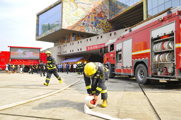 5月10日下午3:30,防灾减灾月系列活动启动仪式、消防安全培训及应急疏散演练在虎溪校区美术馆举行。副校长彭林权、大学城消防中队副队长刘昌果出席了启动仪式,保卫处处长黄勤主持仪式。学校二级单位消防安全责任人和管理人、沙坪坝区消防支队消防员代表、教职工及师生代表、校内重点防火单位工作人员等共计三百余人参加了此次活动。