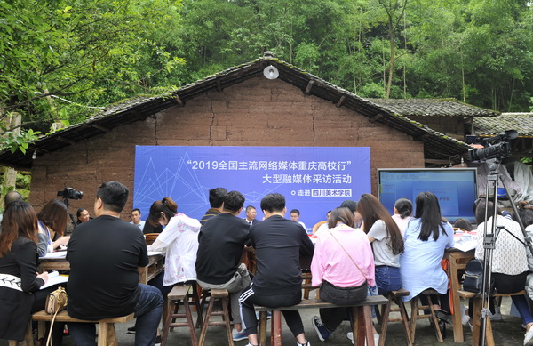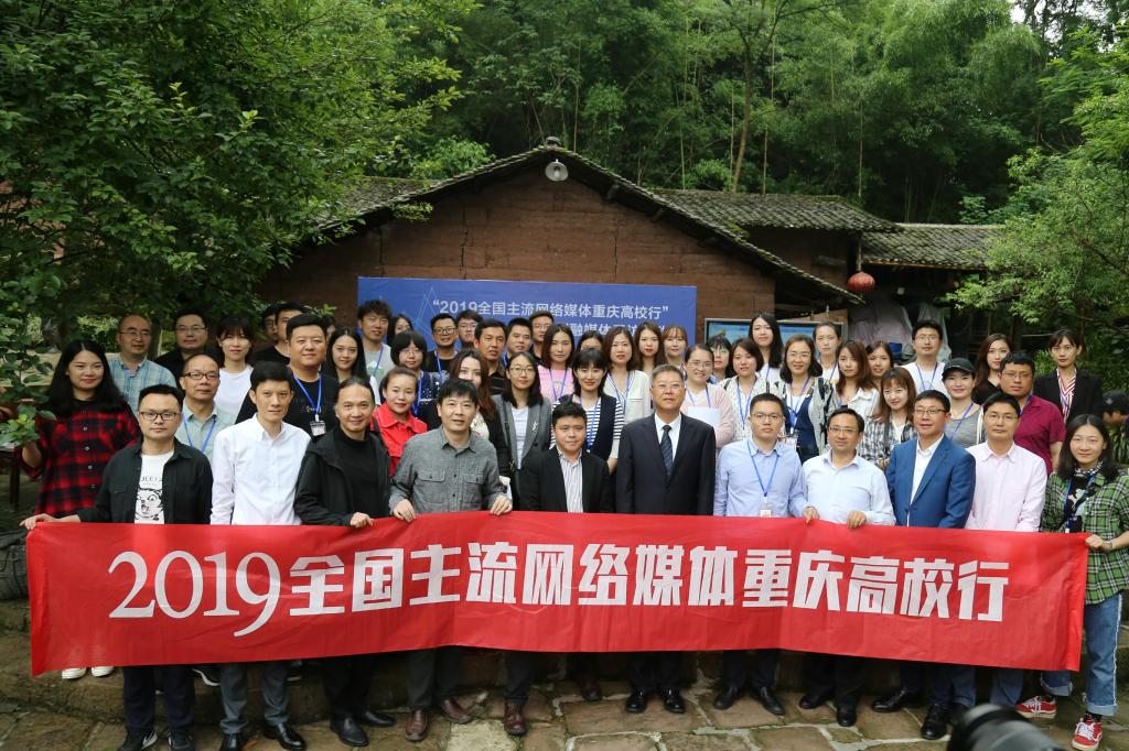 在老院子的院坝里,记者团与学校党委书记黄政,党委副书记、校长庞茂琨,党委常委、副校长彭林权,党委常委、党委宣传部部长贾安东,华龙网教育频道主编、重庆教育舆情研究院院长王大伦,以及学校相关职能部门负责人进行了交流座谈。
