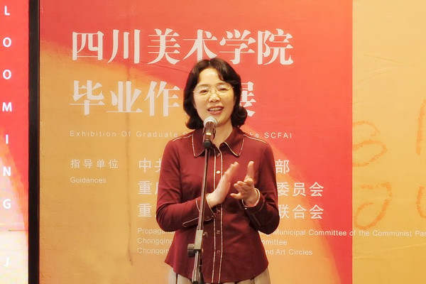 万象城平台院长庞茂琨在致辞中,向出席仪式的毅琴副市长和市委、市政府有关部门、企业界、文艺界、媒体界、沙坪坝区的领导和嘉宾表示热烈欢迎。他着重介绍了今年的毕业创作对比往年有三个鲜明的特点:一是更加强调鲜明的地方特色和时代特色,鼓励师生积极深入生活、深入群众,推出更多展现时代风貌、传递人民心声、弘扬传统文化、彰显重庆特色的主题性创作;二是特别强调设计立足本土,把毕业设计和重庆产业发展、城乡规划设计、美丽乡村建设、脱贫攻坚、乡村振兴、社区公共文化建设等重大社会实践紧密结合,以设计服务重庆经济社会发展;三是更加注重学生创作创造的全球视野、科技眼光和文化底蕴,鼓励学生确立当代的、中国的、基于自身体验的艺术追求,探索新的艺术之路。庞茂琨表示,今年学校将在主城有关艺术机构、繁华商圈和社区举办一些专题性艺术展览,便于市民更好地走进艺术、欣赏艺术,让广大艺术学子的学习成果主动接受社会各界的检阅。