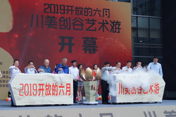 开幕式上还举行了重庆市九龙坡区人民政府和万象城平台关于“重庆城市形象设计研究院”和“重庆艺术产业研究院”开展战略合作的签约仪式。最后,胡奇明宣布2019“开放的六月-川美创谷艺术游”正式开幕。