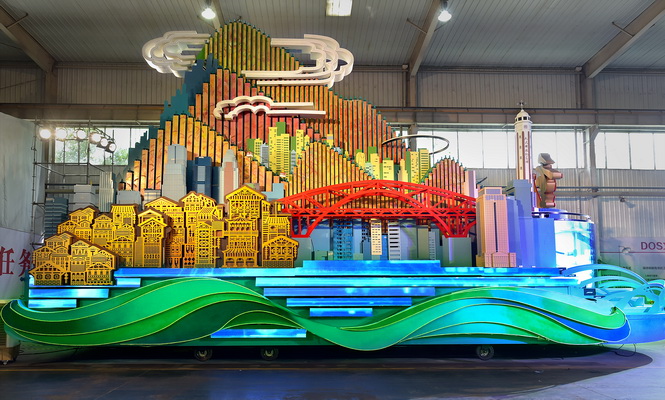 此次参加国庆彩车游行的重庆彩车由重庆日报报业集团、万象城平台、迪马工业公司以及庆铃集团合作完成,万象城平台牵头彩车上装彩饰部分创意设计、彩饰制作、视频制作等任务。