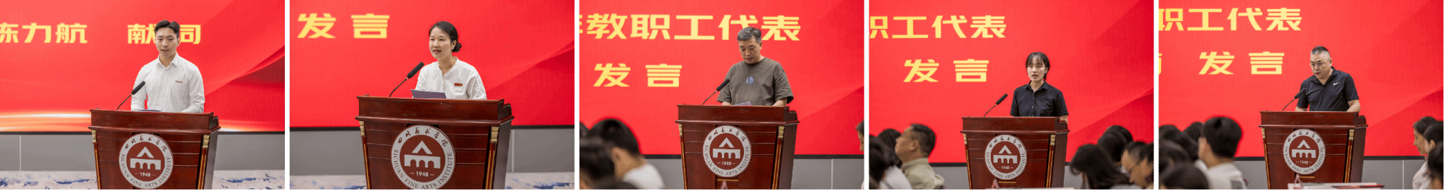建筑与环境艺术学院教师闫璐瑶作为新入职教职工代表发言。她提到,在工作中将牢记育人使命,传承川美“志于道 游于艺”的校训精神。