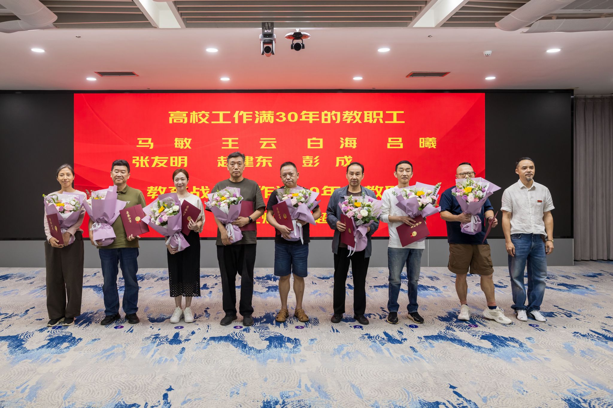 有关职能部门负责同志、二级教学科研单位负责同志、受表彰人员、荣休教职工代表、新进教职工代表和学生代表参加会议。