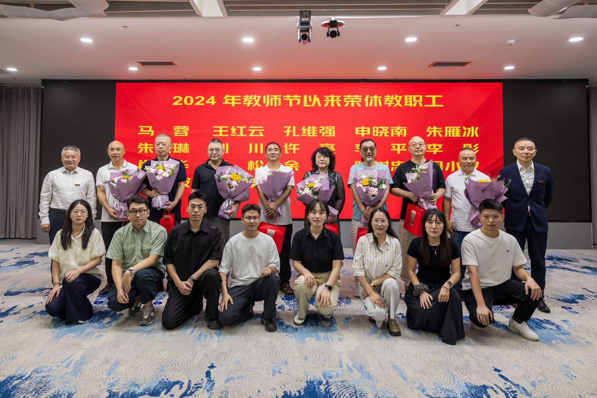 大会举行荣休仪式,对荣休教职工的辛勤付出表示最衷心的感谢和最深切的祝福。新入职教职工代表向荣休教职工代表献花。
