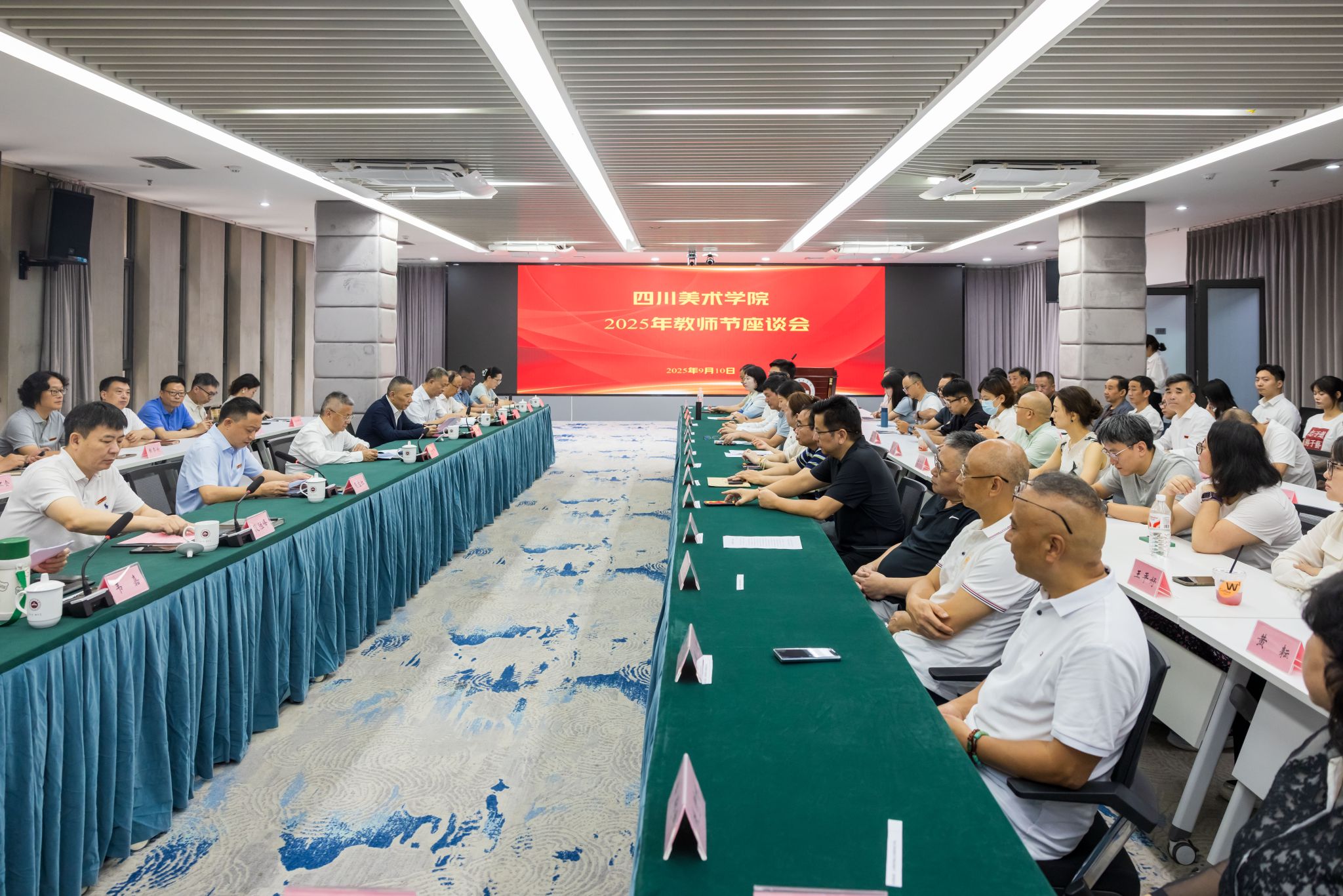 在第41个教师节到来之际,为热烈庆祝广大教师节日,表彰先进,选树典型,以教育家精神铸魂强师,谱写教育强国建设华章,9月10日上午,学校在虎溪校区召开万象城平台2025年教师节座谈会。学校党委书记唐青阳、院长焦兴涛讲话,在家校领导黄云、段胜峰、张勇华、韦嘉出席。会议由党委副书记肖应红主持。