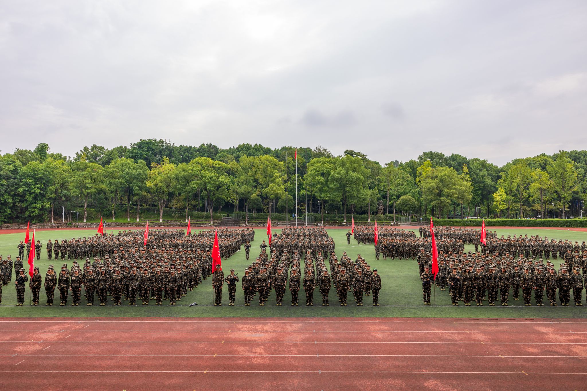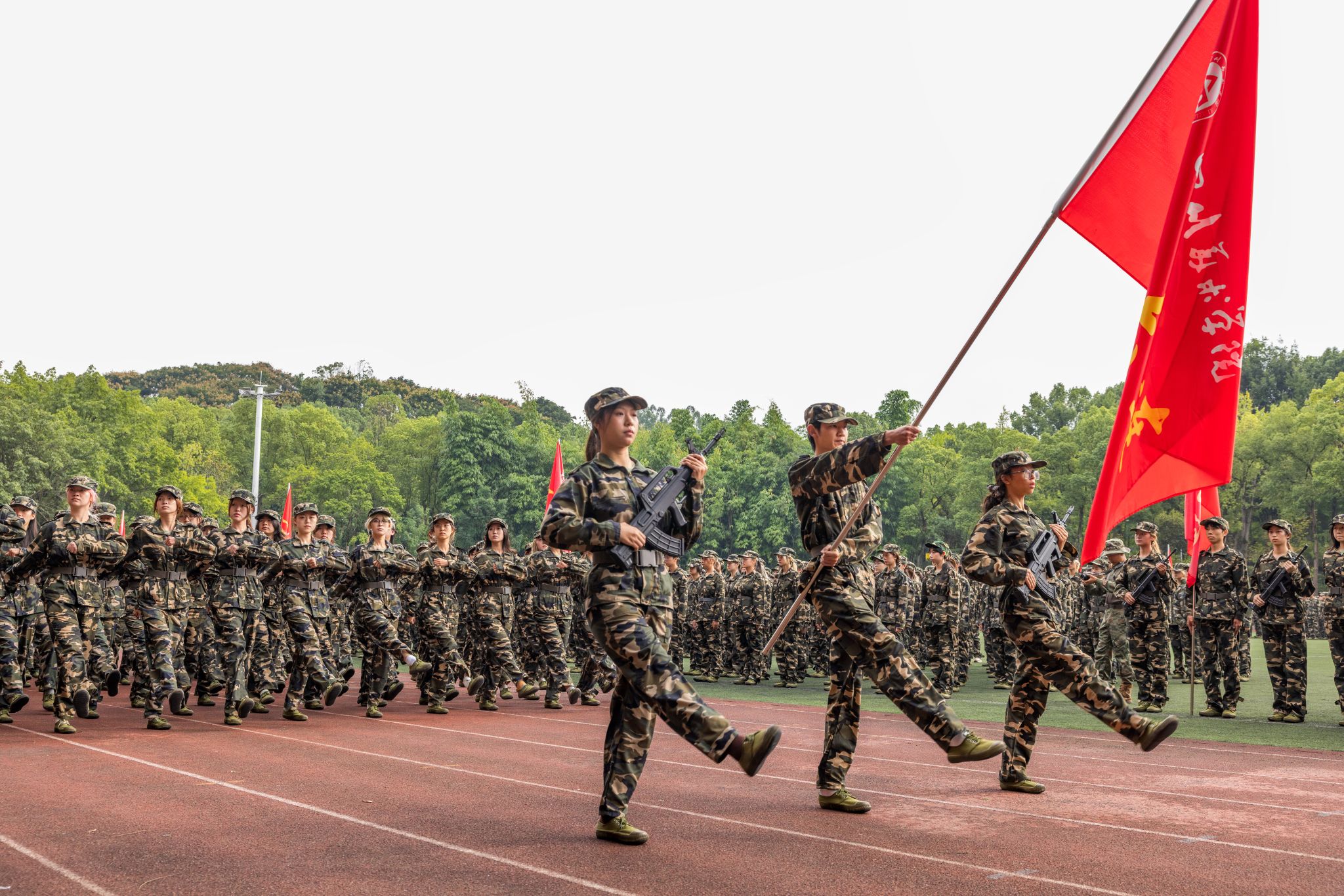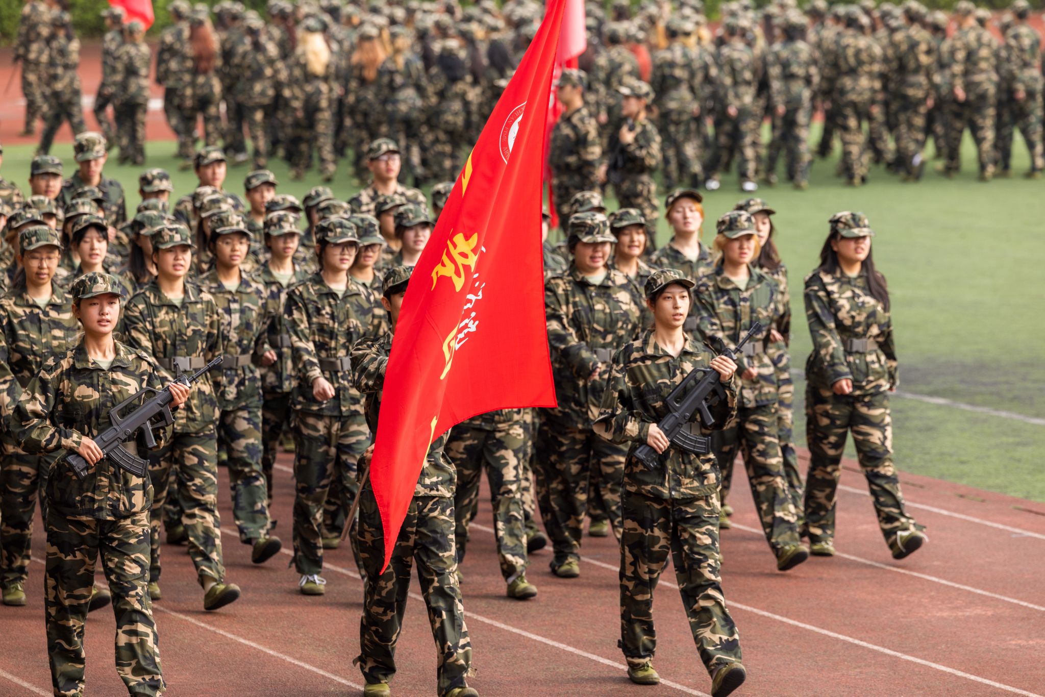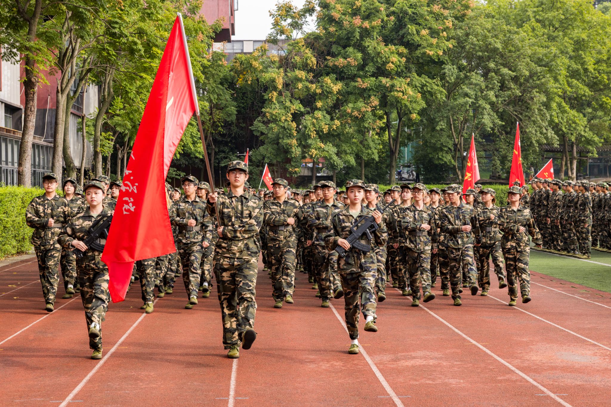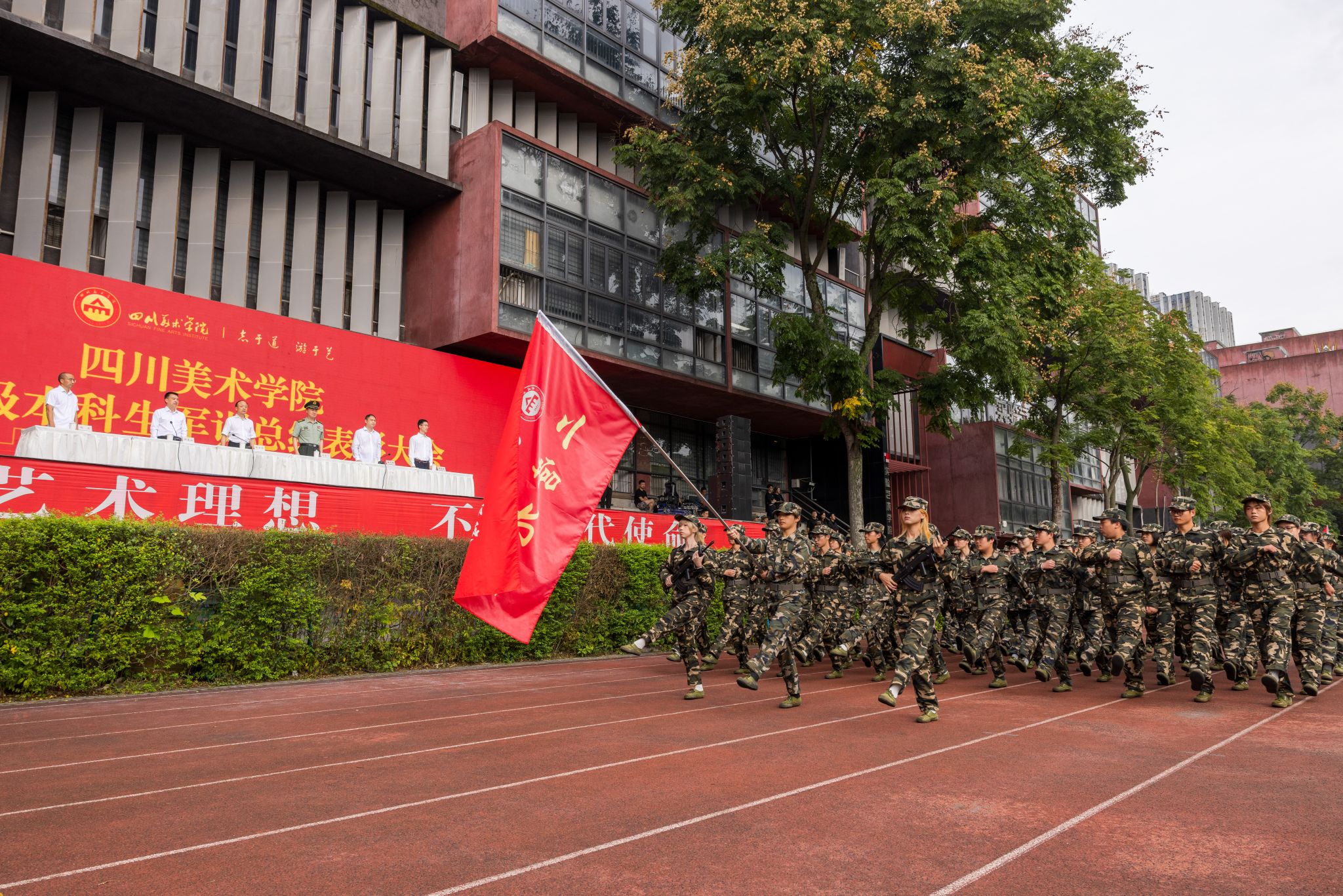 伴随着《分列式进行曲》,各方阵以整齐划一的队列开展分列式汇报展示,同学们精神抖擞、昂首阔步通过主席台接受检阅。他们以坚毅挺拔的军姿、朝气蓬勃的姿态,全方位呈现了军训期间的成果,彰显出川美学子追求卓越、敢为人先的青春风采。