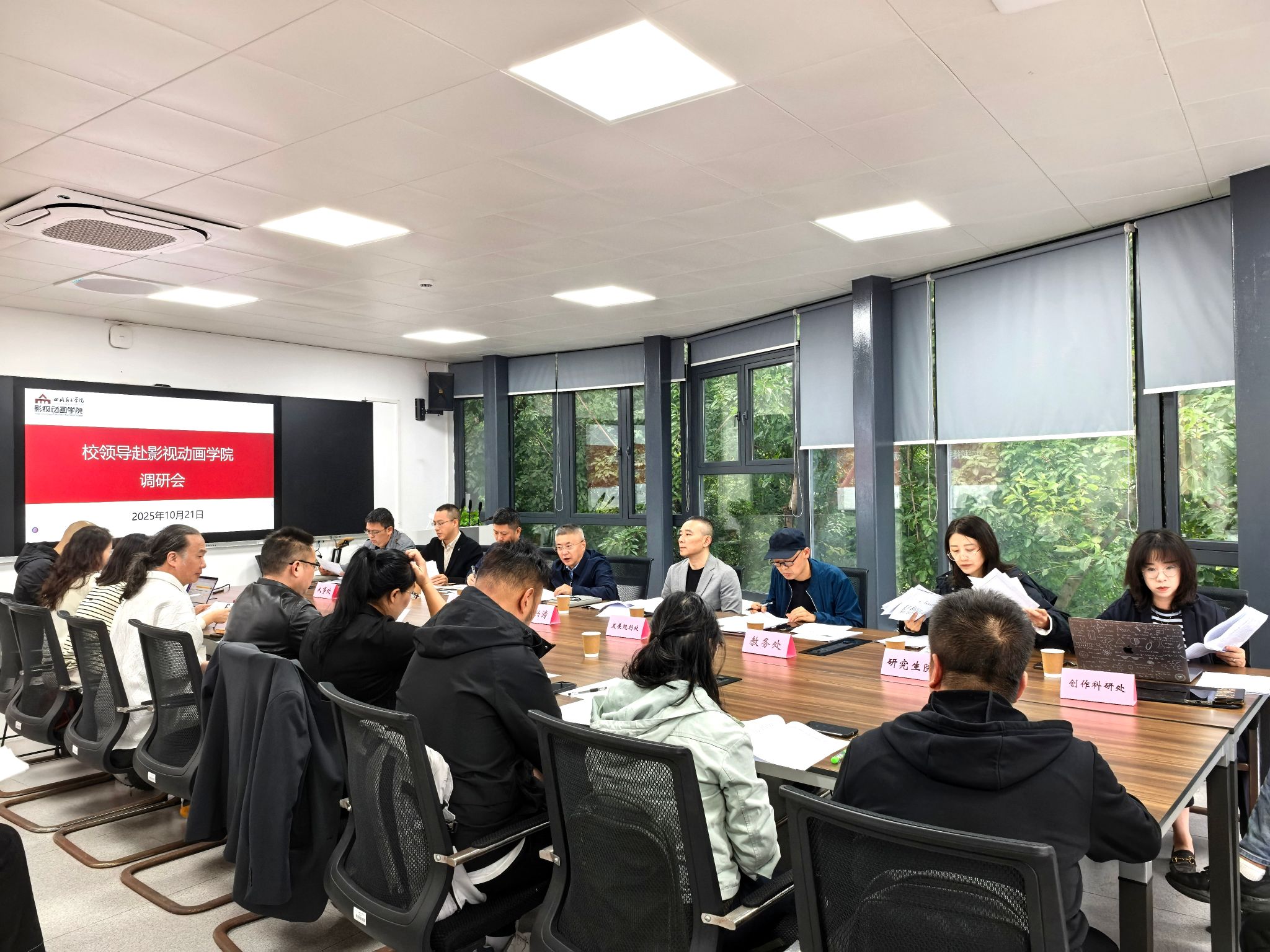 10月21日上午,学校党委书记唐青阳、院长焦兴涛带队赴影视动画学院开展专题调研,重点围绕申博工作及“十五五”发展规划编制进行现场指导与座谈交流。