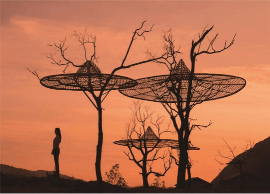 赋能乡村治理,以艺术“编织”乡村新图景。举办“酉阳乡村艺术季”,探索生态治理与艺术创作的深度融合,因地制宜利用喀斯特独特地貌创作22组大地艺术作品,将石漠化治理区改造为生态艺术公园,实现了“生态艺术化、艺术生态化”的美育融合,荣获文化和旅游部“农文旅融合助力乡村脱贫典型案例”,彰显艺术在生态修复与产业振兴中所具有的独特价值。在重庆石柱、酉阳、黔江、大足、长寿等地,实施传统村落、院落、民居改造项目的规划设计工作,探索推进地方特色文化资源保护传承与开发利用。承担“美丽中国行——西部乡村创新营建人才培养计划”和教育部、文旅部非物质文化遗产研修培训项目竹编艺术培训、陶艺培训、漆艺研修、传统雕刻技艺培训等数十余期,共计培训乡村设计创意人才近千名;开展“古法生态艺术试验田”“厕所革命”“何家岩道路生态修复”等,浸润式促进村社治理。
