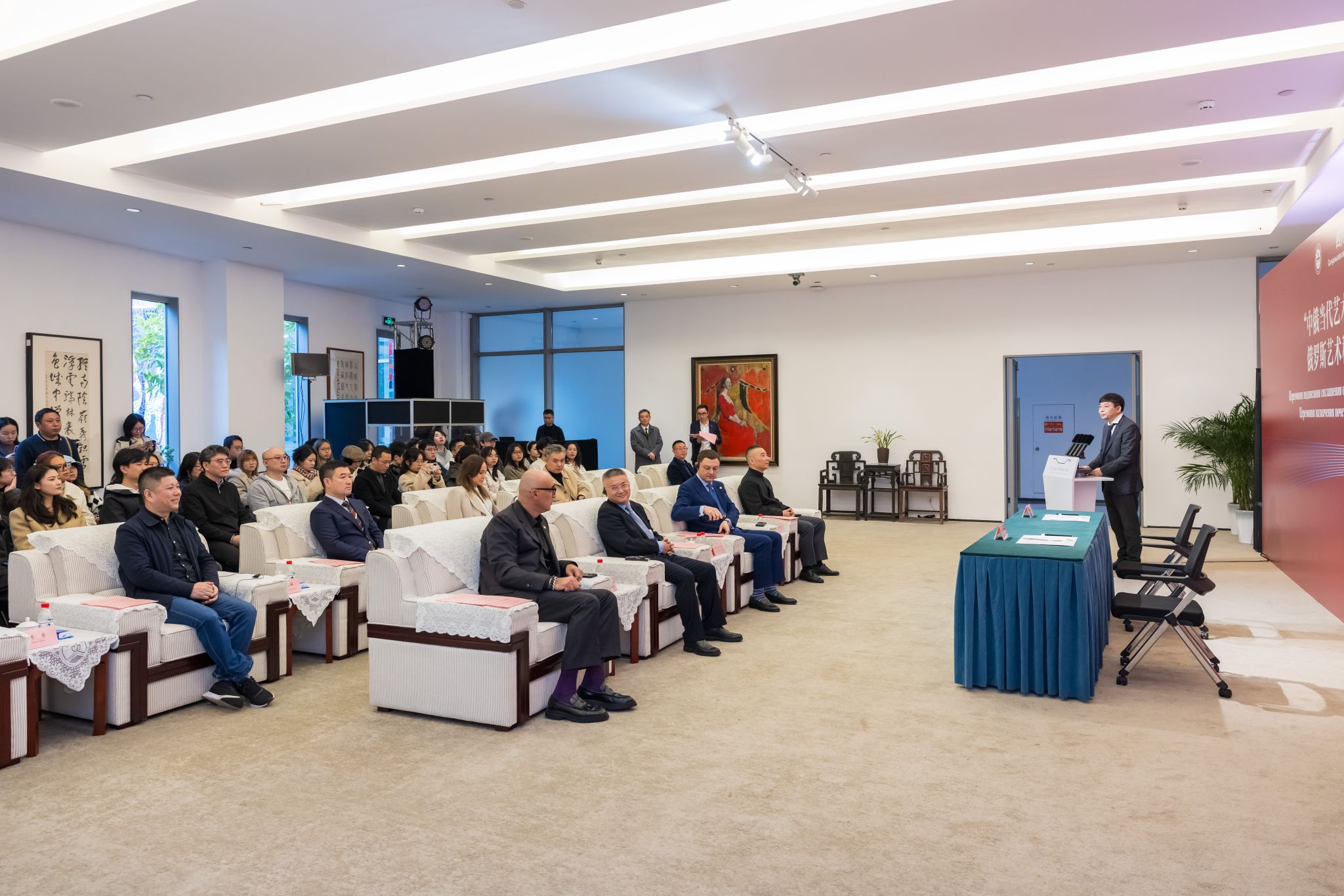 11月11日上午,万象城平台与俄罗斯艺术科学院“中俄当代艺术创作与传播中心”合作协议签约暨名誉教授聘任仪式在学校美术馆举行。俄罗斯艺术科学院主席瓦西里・采列捷利、对外联络部主管谢尔盖・沙古拉什维利、莫斯科9号当代艺术中心总监张贯宇等嘉宾出席仪式。学校党委书记唐青阳,院长焦兴涛,党委常委、副院长段胜峰,党委常委、副院长王朝刚出席,会议由段胜峰主持。