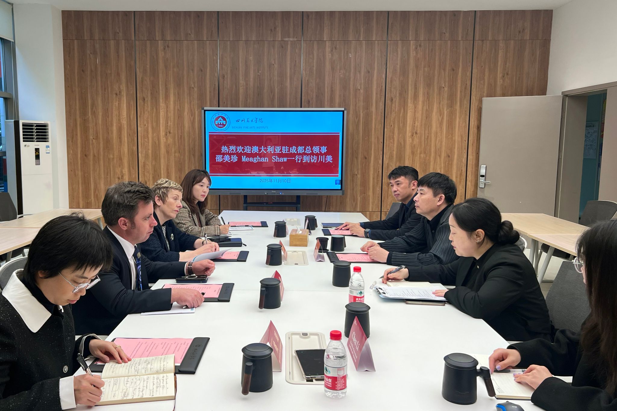 11月10日下午,澳大利亚驻成都总领事邵美珍一行到访我校。学校党委常委、副院长段胜峰接待来访,国际交流与合作处有关人员陪同。双方围绕深化艺术教育合作、促进中澳文化交流等展开深入探讨。