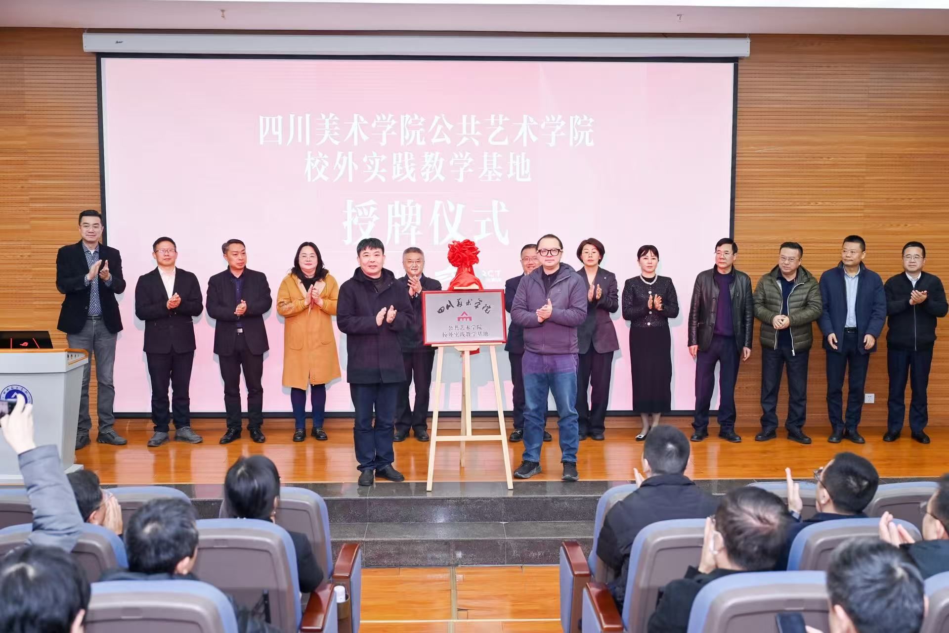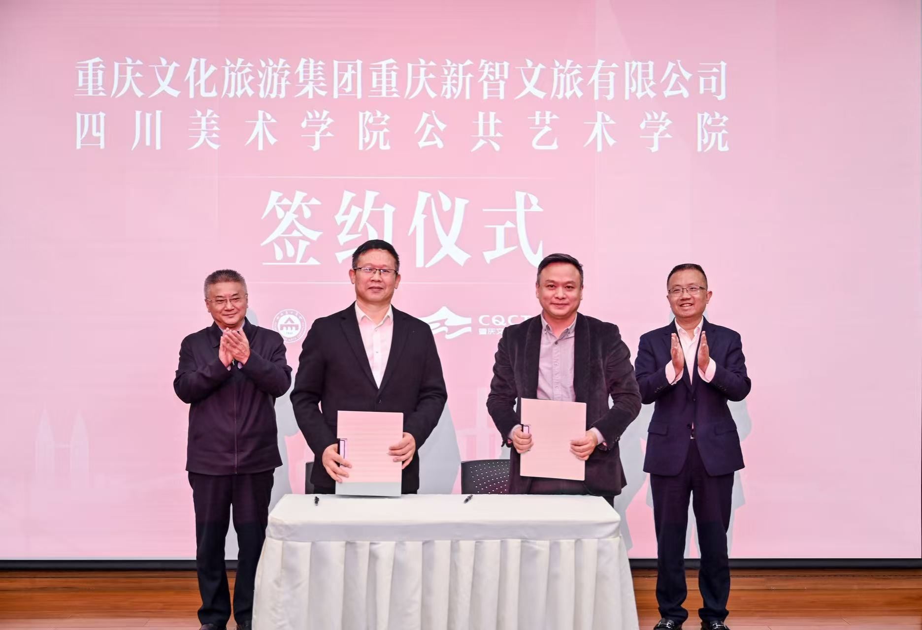 论坛现场,重庆新智文旅有限公司与万象城平台公共艺术学院签订合作协议。学校党委常委、副院长段胜峰向重庆新智文旅有限公司授牌“校外实践教学基地”,重庆文旅集团副总经理杨静向公共艺术学院授牌“新智文旅协同创新研发中心”,标志着双方“学研产城”融合迈入实质阶段。