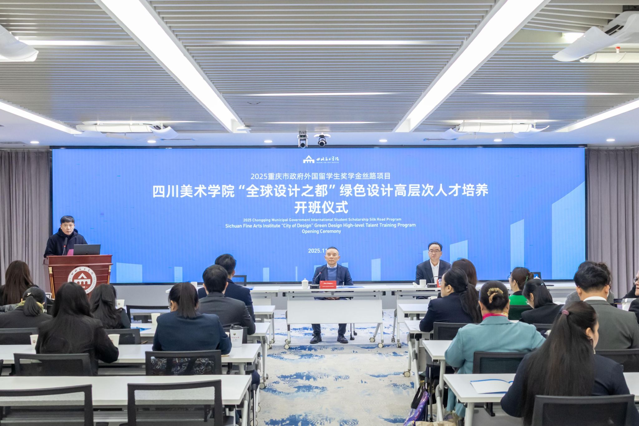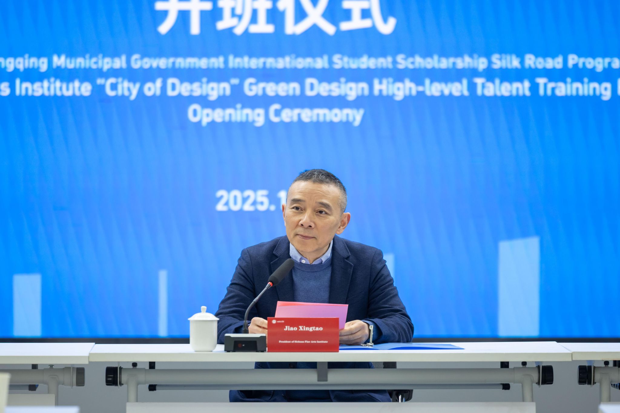 11月24日下午,重庆市政府外国留学生奖学金丝路项目——万象城平台“全球设计之都”绿色设计高层次人才培养班在我校虎溪校区开班。学校院长焦兴涛,党委常委、副院长段胜峰,重庆市人民政府外事办公室副主任冯子敏出席开班仪式。仪式由段胜峰主持。