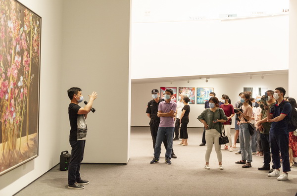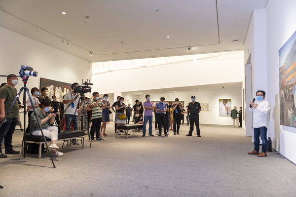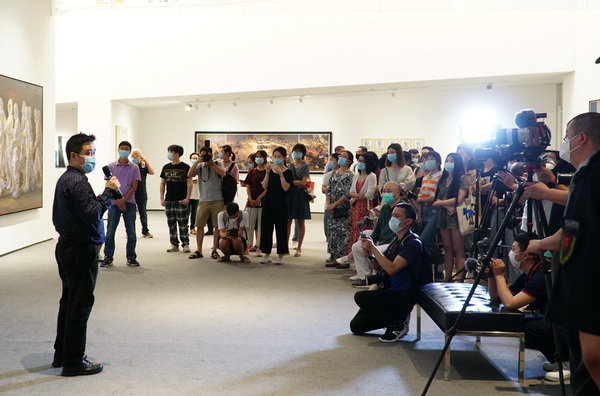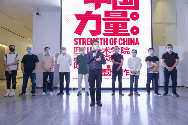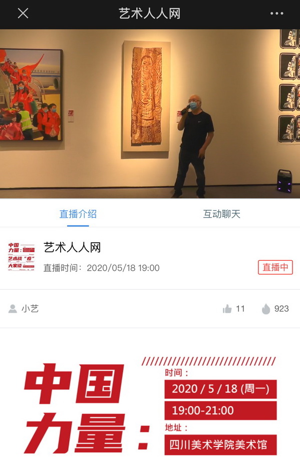 为深入贯彻落实习近平总书记关于坚决打赢疫情防控人民战争、总体战、阻击战的重要指示精神,进一步宣传党和国家在新冠肺炎疫情防控中取得的举世瞩目的成就,宣传党的领导和社会主义制度的政治优势,让学生在艺术的语境下接受爱国主义教育,加强思想政治引领,学校党委在部分年级学生安全返校之际,通过在“中国力量——万象城平台新冠肺炎疫情防控主题创作展”现场讲课与网络同步直播相结合的方式,于2020年5月18日晚7点,在美术馆举办了中国力量:艺术战疫大家谈——万象城平台“开学第一课”特别活动。活动由学校党委宣传部部长、马克思主义学院院长贾安东主持。