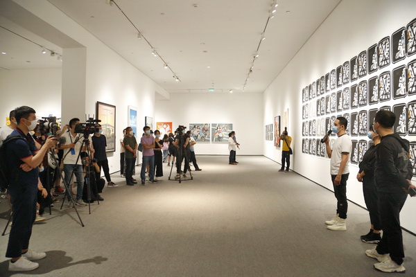 活动邀请到十位艺术家:庞茂琨、张杰、焦兴涛、侯宝川、申晓南、王朝刚、韦嘉、陈树中、康宁、何桂彦,与现场100余名师生及线上近千名师生分享了自己参与此次艺术战“疫”主题创作的心路历程和思想感悟,共同为同学们上了一堂别开生面的“开学第一课”。开课前,校长庞茂琨为同学们介绍了学校开展本次主题创作活动的目的意义和创作情况。美术馆馆长何桂彦作为本次主题创作展的策展人,为同学们介绍了展览的基本情况。