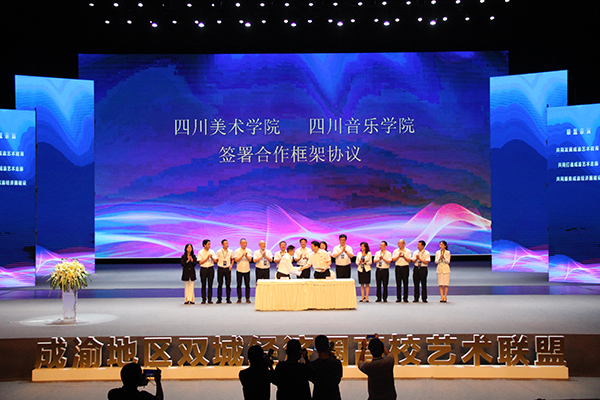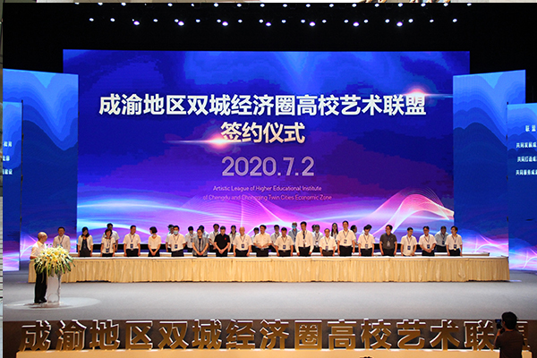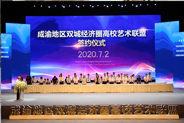 7⽉2⽇,成渝地区双城经济圈⾼校艺术联盟在成都成⽴。该联盟旨在推动成渝地区的艺术教育、艺术创作和艺术产业发展,并启动3年行动计划共同打造“成渝艺术走廊”,用产学研结合的方式服务地方经济文化建设。7月2日下午,成渝地区双城经济圈⾼校艺术联盟成⽴⼤会在成都城市⾳乐厅歌剧厅举⾏。川渝两地68 所⾼校的领导和代表参加了⼤会。