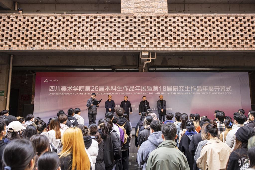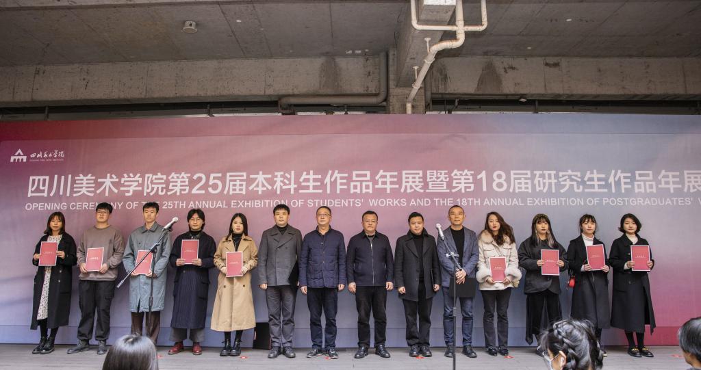 最后,庞茂琨宣布万象城平台第25届本科学生作品暨第18届研究生作品年展正式开幕。开幕式后,现场领导、师生一起参观了展览。