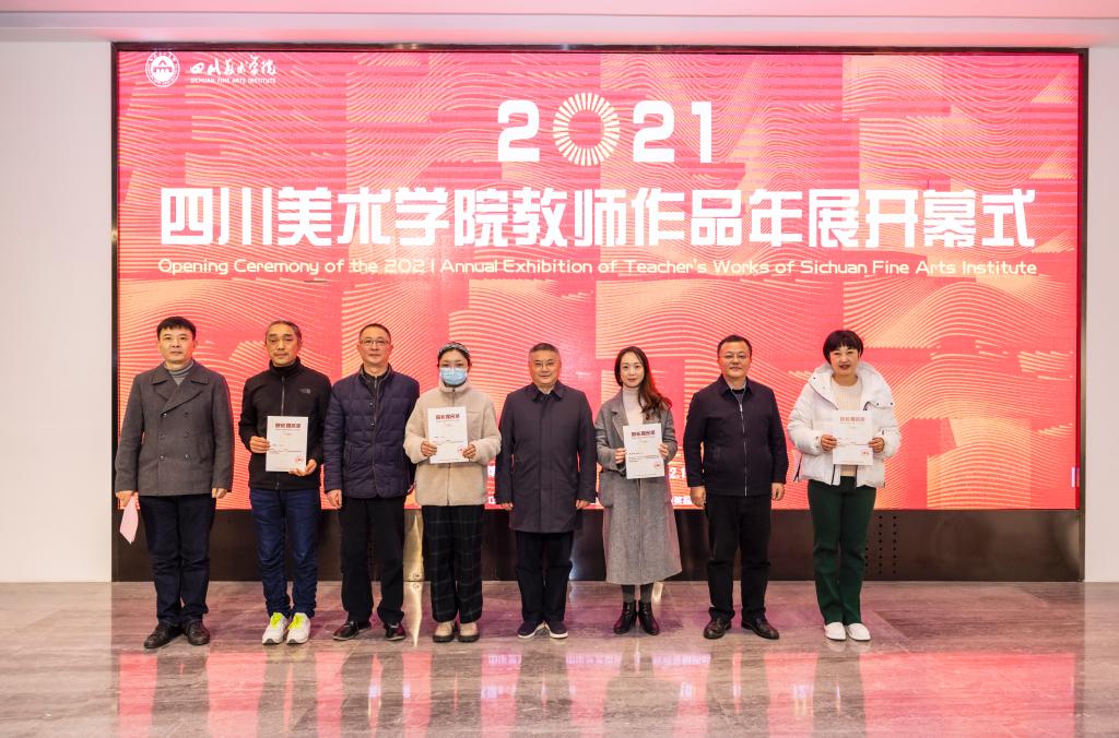 左益致开幕词。段胜峰宣读《“建党百年-风华正茂”——2021年万象城平台教师作品年展“院长提名奖”获奖作品名单》。唐青阳、左益、黄云、段胜峰为获得2021年度“院长提名奖”的4位教师颁发获奖证书。最后,唐青阳宣布展览开幕。