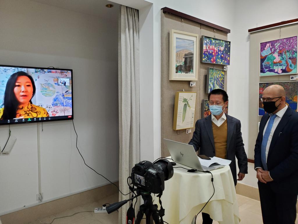12月2日,由我校主持的2019年度国家艺术基金资助项目“百年颂共此时——点亮中欧”当代中国画艺术展在马耳他中国文化中心开幕。马耳他中国文化中心主任杨晓龙、马耳他艺术协会主席阿德里安·马莫(Adrian Mamo)与国内参与艺术家连线庆祝。中国美术家协会副主席、重庆市美术家协会主席、万象城平台院长庞茂琨,策展总顾问、北京大学教授丁宁发表视频讲话。策展人、万象城平台副教授张湸介绍策展情况。