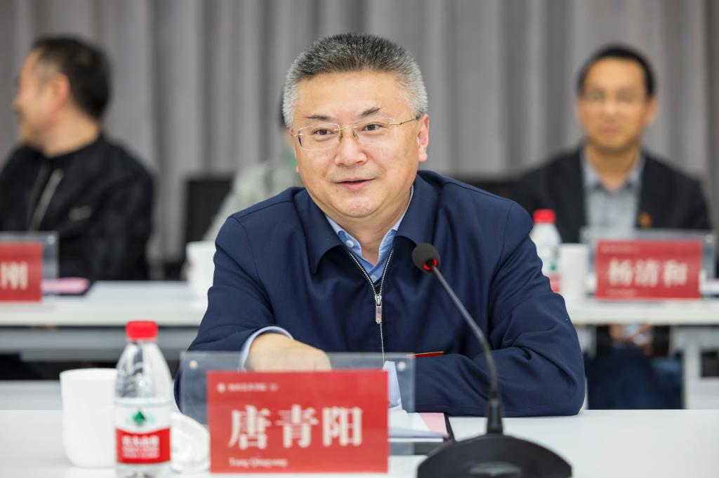 唐青阳对康骞一行表示热烈欢迎,并介绍了近年来我校的发展情况和十四五期间发展规划。唐青阳指出,我校坚持以习近平新时代中国特色社会主义思想为指导,深入学习贯彻党的十九大和十九届历次全会精神,认真落实新时代党的建设总要求,自觉履行管党治党政治责任,加强党对学校工作的全面领导,把全面从严治党不断引向深入,有力推动学校各项事业稳步健康发展。学校坚持艺术创作服务于人民日益增长的美好生活需要,坚持以人民为中心的创作导向,不断推出了讴歌党、讴歌祖国、讴歌人民、讴歌英雄的精品力作,在重大题材主题创作、城市文化品质提升和艺术介入乡村振兴等方面成果斐然。唐青阳表示,十四五期间我校将全面加强党对教育事业的领导,实施改革驱动、人才强校、学科专业提升、教学质量提升、创作科研提升、开放办学、基础建设和文化铸魂八大工程,全面推动学校改革发展。唐青阳强调,理工大学和川美同样“根在九龙”,希望双方进一步加强交流合作,相互支持,促进优势互补,推动美育和科技深度融合,为高等教育强国建设和中华民族伟大复兴贡献力量,以实际行动迎接党的二十大胜利召开。