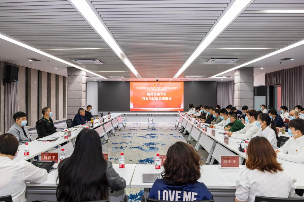 教师代表、各二级学院团总支代表、党总支代表依次做交流发言。马克思主义学院青年教师毛小扬、影视动画学院辅导员唐巧玲勉励青年团员们要勤奋苦练,争做时代新人;不断读书学习,学以致用,担当责任。中国画与书法艺术学院辅导员陈科奇、公共艺术学院许冠作为团总支书记代表发言,提出要提高政治站位、理清工作头绪,从青年特点出发,将立德树人融入到工作全过程。艺术人文学院党总支书记陈德洪作为党总支书记代表发言,作为曾经的共青团干部,勉励青年团员、团干部要在复杂和富有挑战性的工作中肩负起责任。