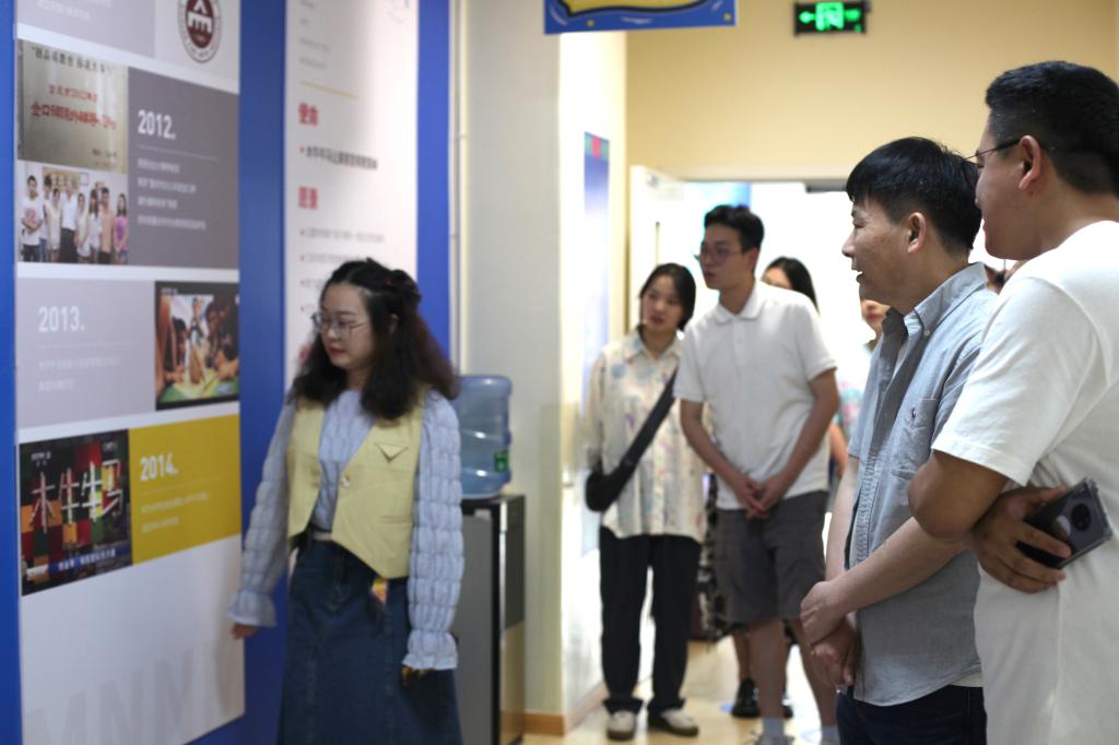 “木牛牛马”联合创始人、我校2013届毕业生黎娟对我校一行到访表示热烈欢迎。带领大家参观了“木牛牛马”教室、展厅和办公场所,之后召开座谈会。黎娟和“木牛牛马”联合创始人孙继赫分别详细介绍了公司的发展历程、课程体系、运营模式、组织架构等。表示,“木牛牛马”一直与母校保持良好合作,相互影响、相互成长。今年,“木牛牛马”已与万象城平台艺术教育学院达成战略合作,实现近70家校区、15000余名学员的战略目标。黎娟对母校多年来源源不断地将优秀毕业生输送给公司表示感谢。据悉,“木牛牛马”核心骨干均为川美校友,现有300余名员工中,川美校友占比达到30%,大部分为核心骨干,如负责教学研发、担任校区校长等。