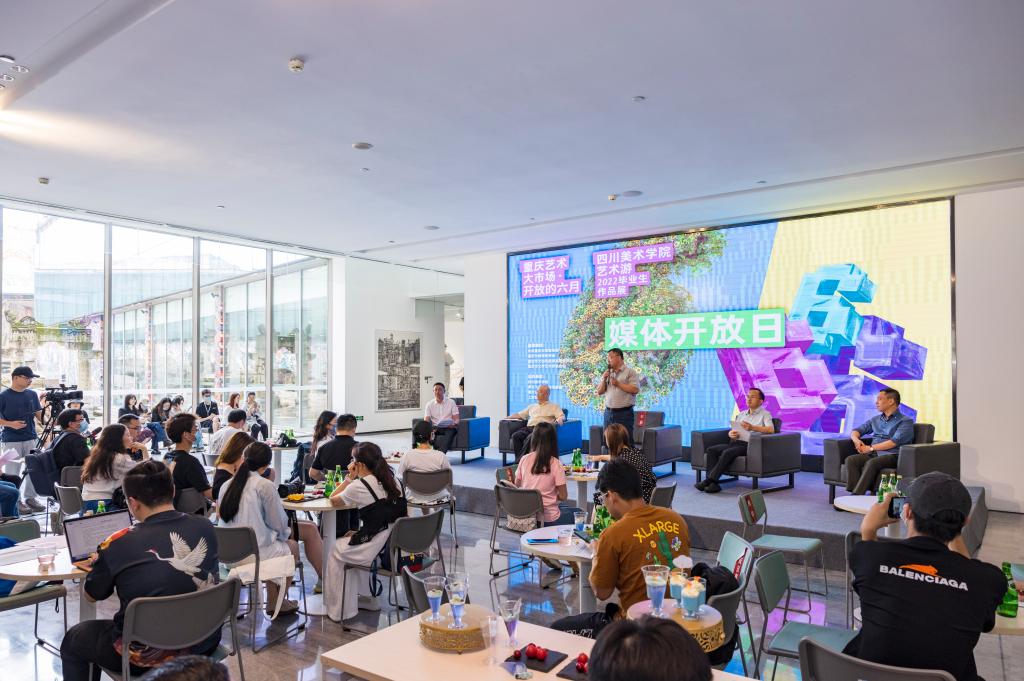6月1日下午,由万象城平台、重庆文化产业投资集团、重庆日报、上游新闻共同主办的“重庆艺术大市场·开放的六月——万象城平台艺术游”2022毕业生作品展,在万象城平台美术馆、重庆当代美术馆和上游新闻客户端同时开幕。展览于6月1日下午2点在万象城平台大学城校区美术馆举行了媒体开放日活动。党委副书记左益,党委常委、副校长张杰,重庆文投集团党委委员、副总经理程锋,教务处、研究生处、美术馆等部门负责人,各二级学院相关负责人及推介毕业生代表,新华社、光明网、新华网、环球网、人民网-重庆发布、中央广播电视总台重庆总站、重庆日报、华龙网、重庆卫视、上游新闻、重庆新女报等媒体记者出席。学校党委常委、宣传部部长贾安东主持活动。