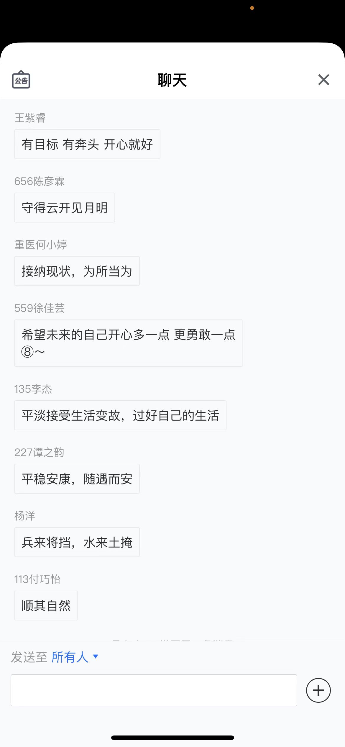 11月20日下午,由重庆医科大学附属大学城医院心理卫生中心专业团队带领,以“隔离不隔爱,希望一直在”为主题,为密接学生和在校隔离的学生分别举办了网络团体心理辅导活动。根据团体专业设置,活动开始前,团体成员签署网络团体工作协议书,共同营造信任安全的团体氛围。为帮助大家尽快融入团体,团体领导者带领大家做了简单的自我介绍,加强团体成员之间的亲切感。活动伊始,伴随着轻松欢快的音乐,同学们在音乐律动小游戏中进行了热身活动。接着,通过分享校园疫情发生后的躯体反应、认知反应、情绪反应和行为反应,帮助大家认识到疫情影响下常见的心理现象,引导大家分享情绪调节方法,鼓励大家用不同的调适技巧缓解情绪压力。最后,每位成员分享对未来的期待:“兵来将挡,水来土掩”“守得云开见月明”“希望未来的自己开心多一点,更勇敢一点”“平淡接受生活变故,过好自己的生活”“接纳现状,为所当为”等等。