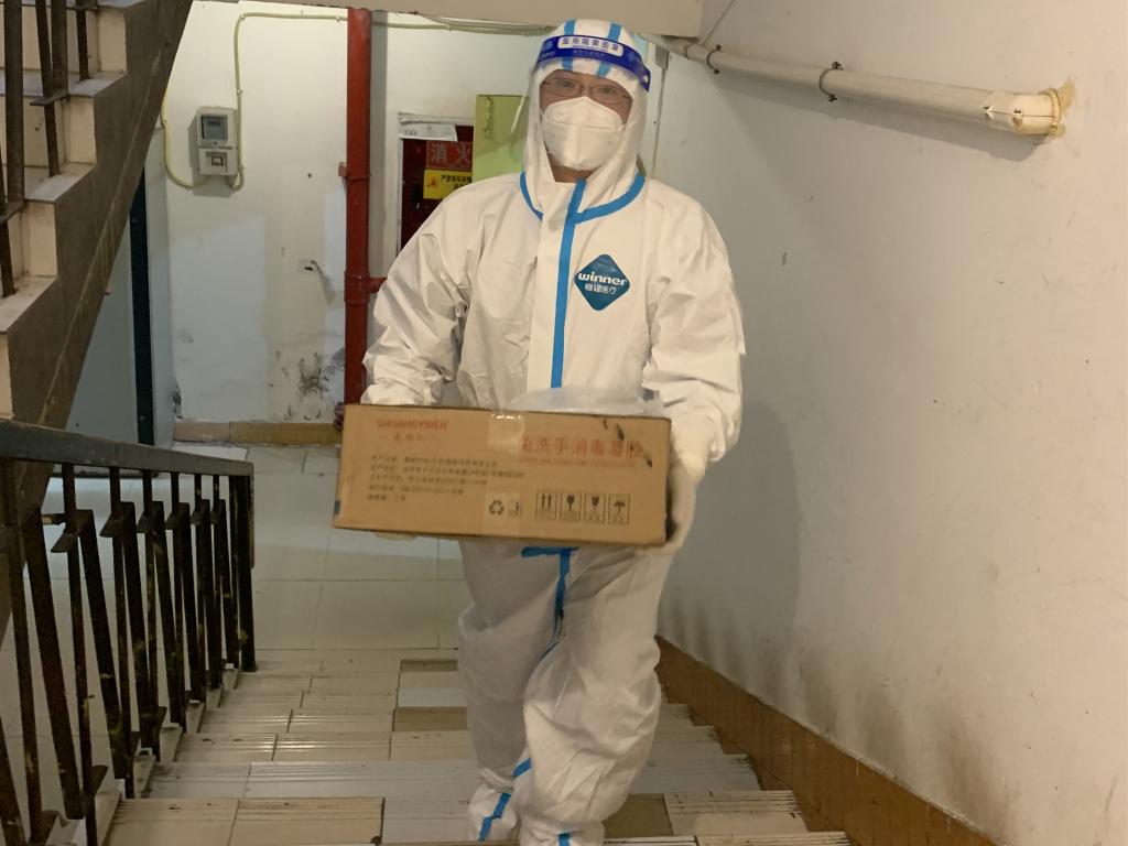 此轮疫情主要发生在学生宿舍楼,当学校疫情防控应急指挥部认为学生宿舍急需一位带头人将大家拧成一股绳时,党员教师王涛同志自告奋勇进驻疫情最严峻、被划定为高风险区的学生宿舍3号楼。王老师心里很清楚,学院4名感染者均出自该栋学生宿舍,感染风险极大,但他依然义无反顾地逆行进入疫情高风险区。