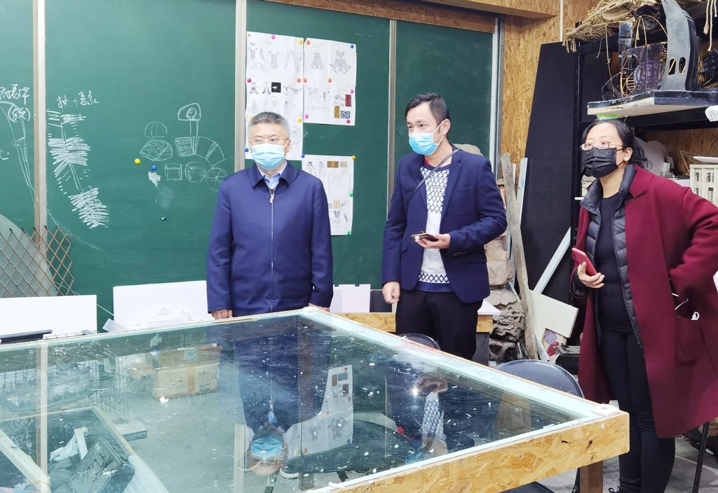 在学生自习室,唐青阳书记亲切鼓励考研学生努力学习,提醒他们离开教室记得断电。在模型制作教室,热熔枪、电锯等电器都按要求断开电源有序摆放,插座等按要求断电,但学生作业仍有摆放不整齐的情况。