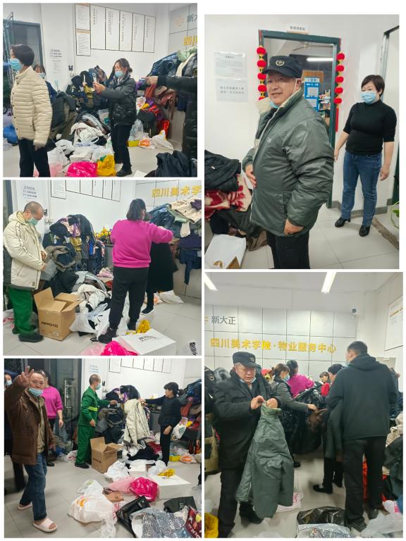 据天气预报,11月30日左右重庆将迎来大幅度降温,一直在校内工作的保供人员们所带御寒衣物不足。为此,11月25日,学校党委教师工作部和工会迅速响应学校党委号召,向全校教职工发出《关于捐赠冬季衣物的倡议》,为坚守疫情防控一线的校内保供人员捐赠防寒保暖衣物。11月26日,短短不到一天时间里,就收到100多位教职工爱心捐赠的防寒保暖衣物300多包、共计1000余件,以及全新的厚袜若干、棉被若干、围巾帽子若干。
