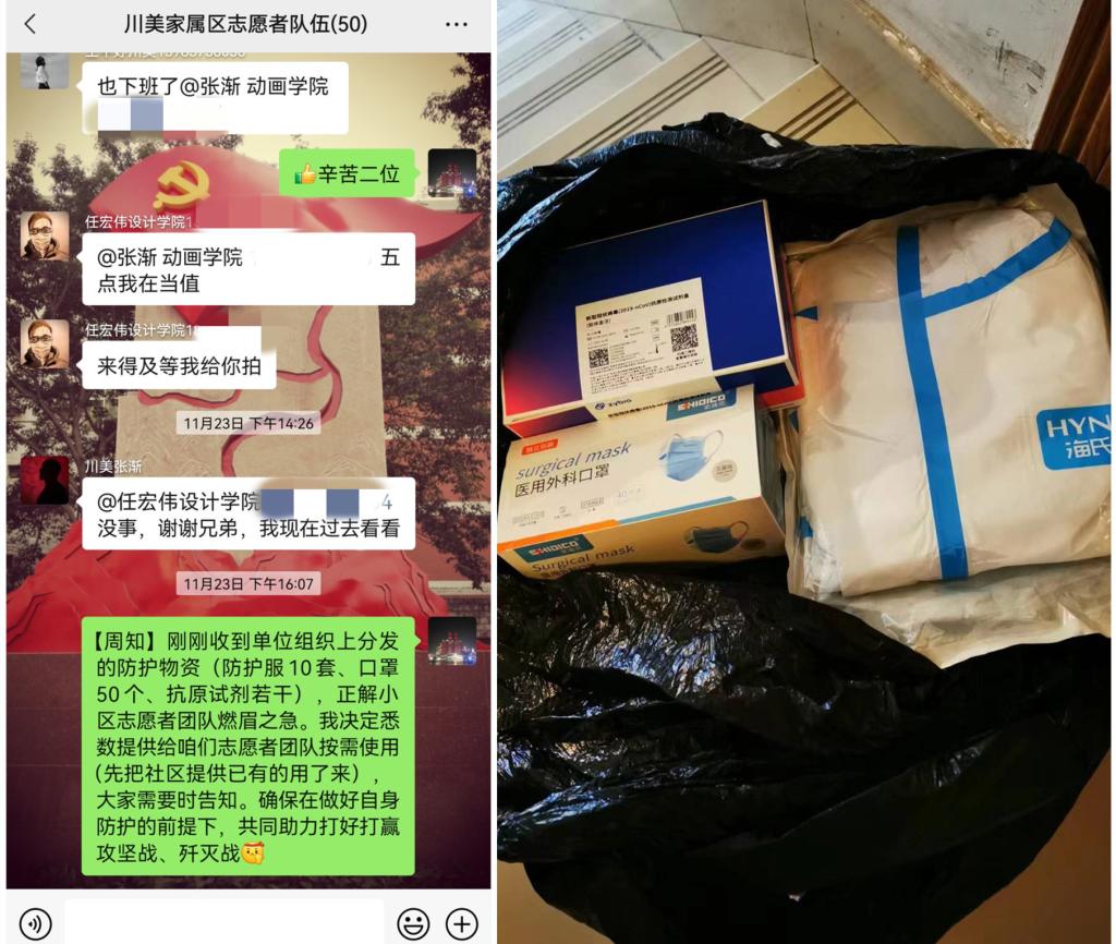 听闻校方开展“献爱心、捐冬衣”活动,志愿者们在微信群里热闹了起来,大家积极响应倡议,一天时间就为在校区闭环工作的后勤保供人员捐赠冬衣等物资近200件,为校区抗疫尽献绵薄之力。针对小区老人多、小孩多、需求多、渠道少等特点,志愿者们还积极开展劝导引导,在管好家人的同时,坚持在业主群每日动态发布主流媒体权威信息,并及时进行线上正面引导、门岗处线下劝导,争取业主们对小区防疫的更多认知认同、支持配合。