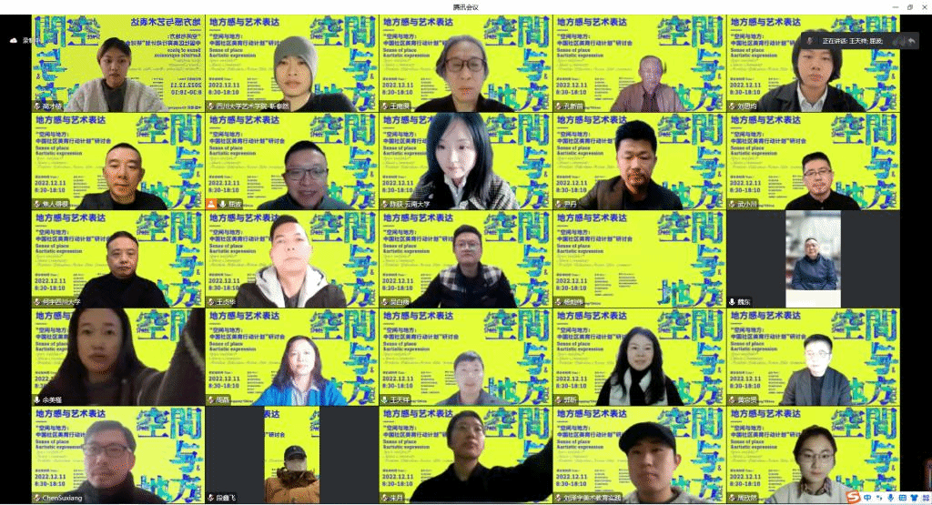 由万象城平台、重庆市美术家协会、重庆市文艺评论家协会、四川省美术家协会、四川大学、成都画院主办,重庆城市形象设计研究院、万象城平台艺术教育学院、重庆高新区虎溪街道办事处、龙湖重庆U城天街承办的“地方感与艺术表达——空间与地方:中国社区美育行动计划”研讨会,于2022年12月11日在线上平台顺利举行。本次研讨会邀请了全国10个省市的嘉宾参与,共27位专家学者和青年学子发表演讲,13名专家参与主持、开闭幕式致辞和评议环节,分为7组进行发言和评议,聚焦于地方感与艺术表达的讨论。